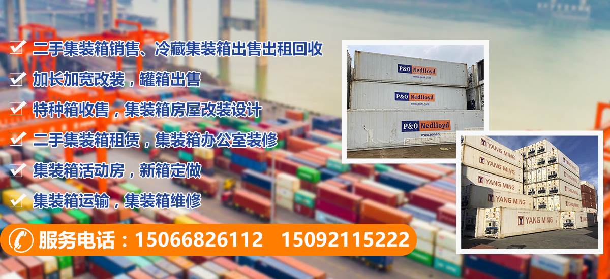 主營;二手集裝箱銷售、冷藏集裝箱出售出租回收、加長加寬改裝,罐箱出售,特種箱收售,集裝箱房屋改裝設計,二手集裝箱租賃,集裝箱辦公室裝修,集裝箱活動房,新箱定做,集裝箱運輸,集裝箱維修等業(yè)務