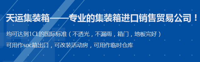 青島天運集裝箱服務有限公司,是專業(yè)的集裝箱進口銷售貿(mào)易公司,公司與各大船公司租箱公司保持著密切的合作關系,箱源充足,所有出售集裝箱均可達到IICL的國際標準(不透光,不漏雨,箱門,地板完好)可用作soc箱出口,可改裝活動房,可用作臨時倉庫。